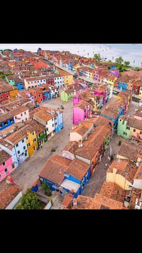 Радуга цветов, как будто кто-то только что пролил коробку цветных карандашейДома Бурано изначально были окрашены в яркие цвета, чтобы семьи могли отличать дома от своих соседей. В настоящее время запрещено законом, чтобы соседние дома имели одинаковый цвет, чтобы обеспечить разнообразие цветов на разных участках острова.
