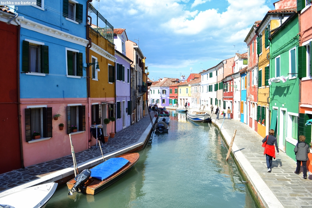 Большинство посетителей привлекают ярко окрашенные дома Бурано, расположенные вдоль каналов, заполненных лодками. Говорят, что традиция раскрашивать дома таким образом связана с наследием острова как рыбацкой деревни — яркие цвета помогли возвращающимся рыбакам найти свои дома в густом тумане лагуны.Также говорят, что жители Бурано предпочитают яркую краску как способ обозначить, где заканчивается одна собственность и начинается другая.