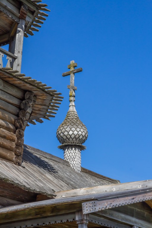 Эта массивная церковь (также известная как «летняя церковь») имеет высоту около 30 м, что делает ее одной из самых высоких бревенчатых построек в мире. Меньшая, девятиглавая Покровская церковь (известная также как «зимняя церковь») была построена в 1764 г.