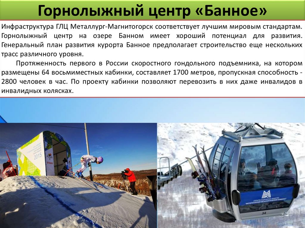 Также недалеко от озера Банное Челябинская область предлагает отдохнуть в горнолыжных центрах, представляющих интерес не только зимой, но и летом. Ведь лишь здесь, поднявшись на подъемнике, можно оценить красоту местной природы.