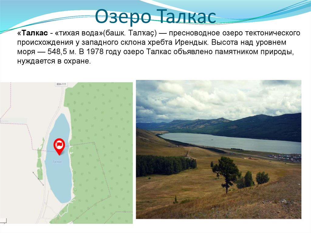 Теперь немного цифр. Площадь зеркала озера – 7,7 квадратных километров, длина озера – 4170 метров, средняя ширина – 1880 метров, средняя глубина – 10,6 метров, а максимальная достигает 28 метров. Это самое глубокое озеро Башкирии. Большие глубины объясняются тектоническим происхождением озера.