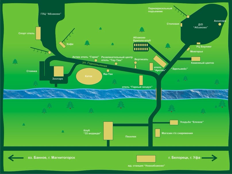 Поблизости от Банного находится известнейший горнолыжный центр «Абзаково». Помимо горнолыжки, в Абзаково есть аквапарк и даже отличный зоопарк.
