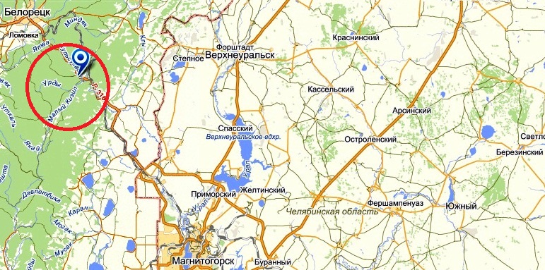 Там расположено Банное озеро, где находится один из экологически чистых уголков Башкортостана. Точное местонахождение – Абзелиловский район, в 37 км от Магнитогорска.