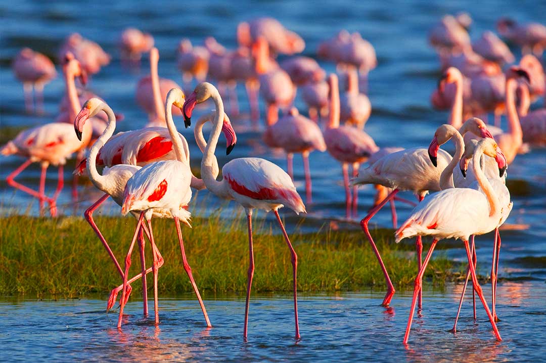 Фламинго: Озеро Накуру очень соленое, его щелочность способствует росту большого количества сине-зеленых водорослей, которые являются пищей для фламинго. Миллионы фламинго остаются на этом озере, из-за чего озеро почти все время кажется розовым, отсюда и прозвище «Розовое озеро», потому что фламинго — самые известные существа на озере. Фламинго — самая известная достопримечательность Национального парка озера Накуру, и это то, что туристы рады видеть во время своего визита в парк; По оценкам, в определенный момент времени на озере Накуру может обитать более миллиона фламинго, а это значит, что вы никогда не упустите возможность увидеть их во время своего визита. Фламинго на озере Накуру бывают как меньших, так и больших типов, причем меньший тип, как правило, больше, чем больший. У больших фламинго есть черная полоса на кончике клюва, а у меньших фламинго есть своего рода расширенный черный оттенок по всему клюву; и это их главная отличительная черта; большие фламинго также имеют более слабый розовый оттенок, тогда как меньшие фламинго имеют более темный розовый оттенок; большинство других функций похожи.