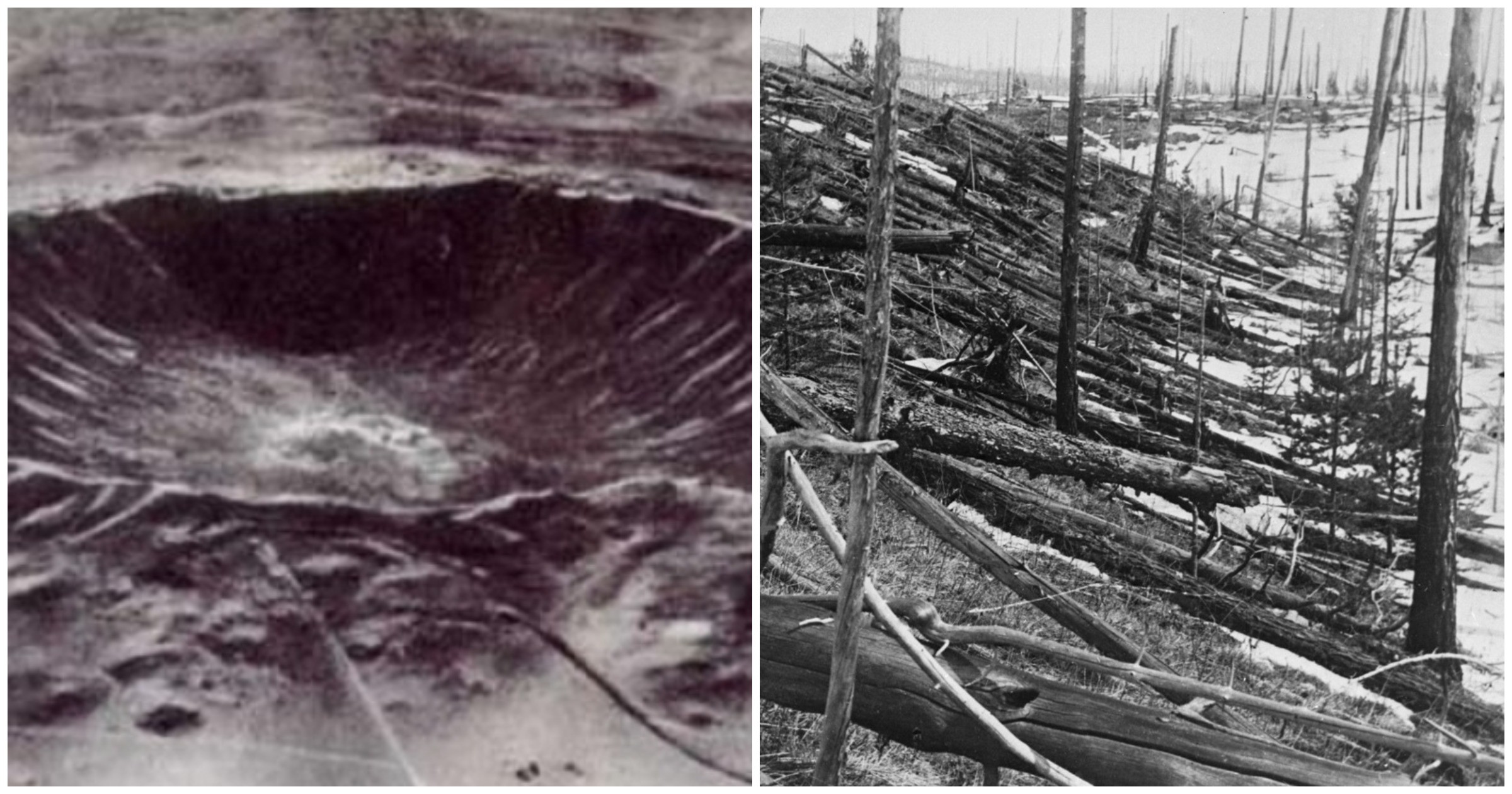 За долгие годы поисков обломков Тунгусского метеорита члены различных экспедиций в общей сложности обнаружили на территории катастрофы 12 широких отверстий конической формы. На какую глубину они уходят, никто не знает, так как их никто даже не пытался изучать. Однако недавно исследователи впервые задумались над происхождением отверстий и картиной повала деревьев в районе катаклизма. По всем известным теориям и по самой практике, поваленные стволы должны лежать параллельными рядами. А тут они лежат явно антинаучно. Значит, и взрыв был не классическим, а каким-то совершенно неведомым науке. Все эти факты позволили геофизикам вполне обоснованно предположить, что тщательное изучение конических отверстий в земле прольет свет на сибирскую тайну. Некоторые же ученые уже стали высказывать мысль о земном происхождении феномена.