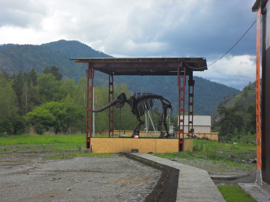 C Чуйского тракта — федеральной трассы Р-256, самой туристической и самой загруженной в Горном Алтае летом, — сразу виден огромный и яркий баннер: «ПАЛЕОПАРК». А вслед за ним в глаза бросается огромный скелет мамонта (как выясняется позже, это не мамонт, а его «прапрадедушка» — стегодон). На входе туристов встречают носорог и небольшие стилизованные металлические скелеты динозавров. А дальше — погружение в мир мамонтов, гигантских ленивцев, древних лохматых предков зубров и даже мира потустороннего — духов Алтая. А те, кто в начале 2000-х играл в популярный приключенческий квест Syberia, на тропах Палеопарка точно почувствуют себя в одной из локаций игры.