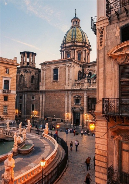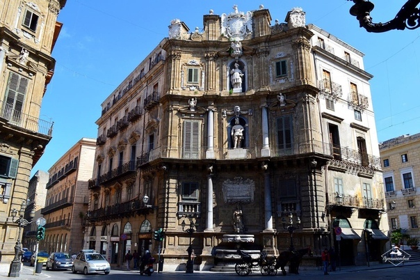Барокко Пьяцца Претория. Фотография: CJ Romas / Getty Images На пересечении улиц Виа Македа и Корсо Витторио Эмануэле находится Пьяцца Вильена , четыре угла которой в стиле барокко отмечают центр исторического квартала, известного как Кватро Канти.