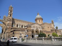 Исторический центр Палермо — Куаттро-Канти — считается вторым по размерам в Италии (после Генуи), но восстановление его все еще ведется, поскольку во времена Второй мировой войны ему был нанесен огромный ущерб. В пределах Куаттро-Канти можно найти самые интересные памятники, а в районе Кальса, расположенном на месте старого арабского квартала, много сооружений в мавританском стиле. Широко известны: комплекс Палаццо-деи-Норманни (один из лучших образцов норманской архитектуры на территории Италии, перестроенный из арабской крепости) с королевской капеллой Палатина (1132 г.), комплекс Королевского дворца, великолепные охотничьи замки Дзиса (1160-1175 гг.) и Куба (1180 г.), дворцы Кьярамонте, Абателис (оба XV в.) и Скьяфанте (1307-1380 гг.), Соборная площадь с балюстрадой и статуями святых, замечательный фонтан «Претория» (XVI в.