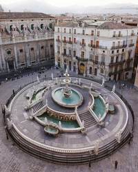 Сразу на юг и восток находится грандиозная Piazza Pretoria , также известная как Piazza della Vergogna, площадь стыда, где находятся полностью обнаженные статуи нимф, тритонов и прыгающих речных богов ( senza veli, без вуалей), украшающие великолепный круглый фонтан. напротив Палаццо Преторио (ратуша).На окружающих улицах расположены потрясающие церкви 12-го века, арабо-нормандская церковь Санта-Мария-дель-Аммиральо, церковь Капитолия Сан-Катальдо с ее отчетливыми выцветшими красными куполами и церковь Санта-Катерина 16-го века в стиле барокко.
