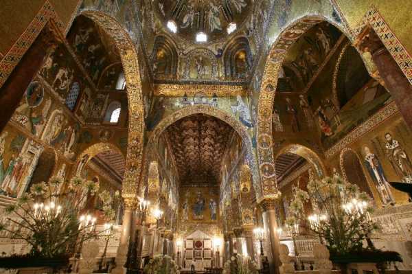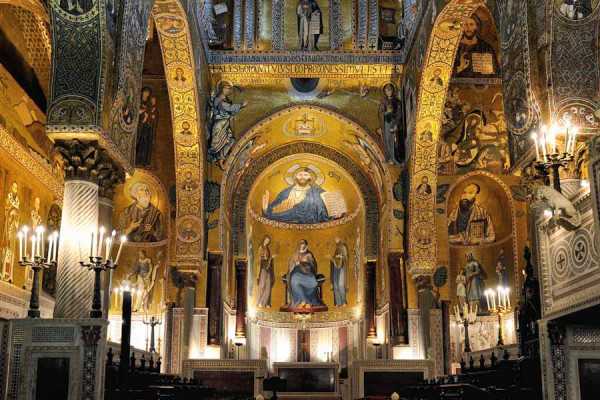 Палатинская капеллаПалатинская капелла — шедевр средневековой архитектуры, который представляет собой уникальное слияние норманнского, арабского, византийского и романского стилей. Это придворная церковь сицилийских королей, освященная в 12 веке. Несмотря на все изменения, происходившие на протяжении веков, интерьер её не утратил общей гармонии. Эта небольшая трёхнефная базилика, прежде всего, известна великолепным внутренним убранством, в котором выделяются средневековые мозаики.