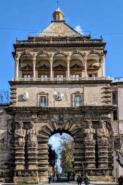 Ворота Порто Нуова находятся рядом с Норманнским дворцом. С них обычно начинают знакомство с историческим центром Палермо. В XIV веке здесь стояли деревянные ворота, их называли Воротами орла. Когда в XVI столетии Карл V победил в Тунисской войне, Сенат города постановил соорудить на месте ворот монументальную триумфальную арку.