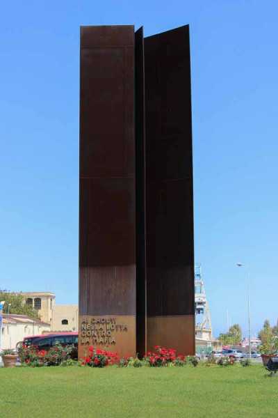 Жертв мафии, конечно же, не 13 — столько итальянских партизан казнили французские войска в 1860 году. А памятник жертвам мафии установлен в 1982 году на деньги рабочих Палермо. Это выполненный в модернистском стиле 15-метровый силуэт башни, составленный из нескольких тонких каменных плит. Примечательно, что установили памятник в самый разгар мафиозного террора — именно в 1980-е годы убийства правоохранителей происходили на Сицилии с регулярностью боя часов.