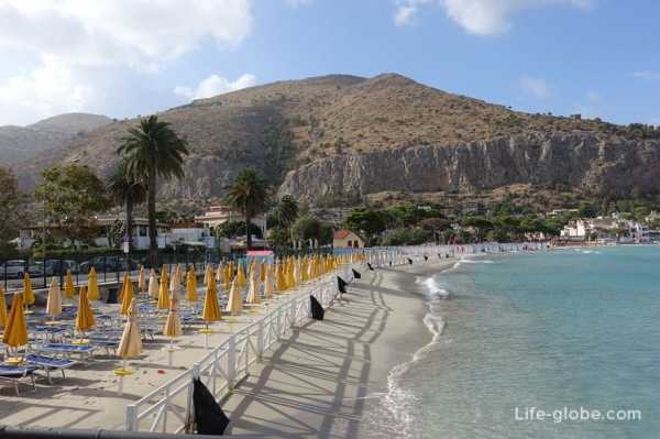 Одним из самых посещаемых и популярных, как среди туристов, так и среди местного населения, считается пляж Монделло. Дорога из центра Палермо в Монделло займет минут 20 на городком автобусе. Пляж Монделло песчаный, достаточно протяженный и очень живописный, к тому же в самом центре Монделло есть, где погулять и что посмотреть. Вот только в высокий сезон на пляже многолюдно, а на выходные приезжают и местные жители.
