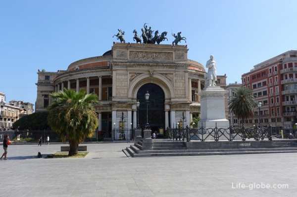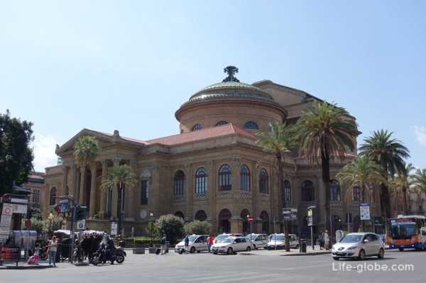 Находится на Via Maqueda со стороны района Seralcadio. Общемировую известность тетр получили после выхода в свет фильма «Крёстный отец 3», заключительные сцены которого снимались именно здесь.