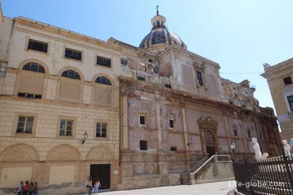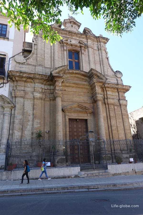 Расположена церковь в районе Kalsa, рядом с Quatro quanti — четырьмя углами образующимися пересечением Via Vittorio Emanuele и Via Maqueda.