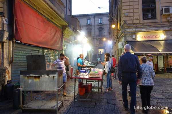 Рынок находится в районе Albergheria, неподалеку от Chiesa Gesu. В Палермо рынок больше чем место где можно купить/продать свежевыбеленную рыбу или «свежевырощенные» овощи. В Палермо рынок — это культ, центр притяжения и главное место в городе. На самом деле в Палермо три крупных рынка, но Балларо более древний и популярный. Хотя на рынок Vucciria я бы тоже заглянул, колорита ему так же не занимать. Он работает во все дни недели, кроме воскресенья до 2 часов дня. Однако лучшее время для его посещения – 9 утра, когда торговцы выкладывают свой лучший товар для закупщиков из кафе и ресторанов Палермо.