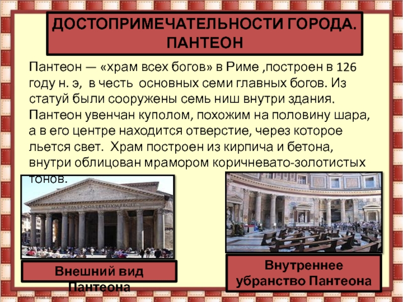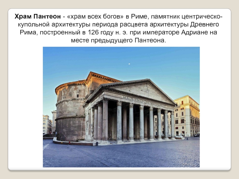 Само название – Пантеон – имеет древнегреческое происхождение и буквально означает «храм всех богов».