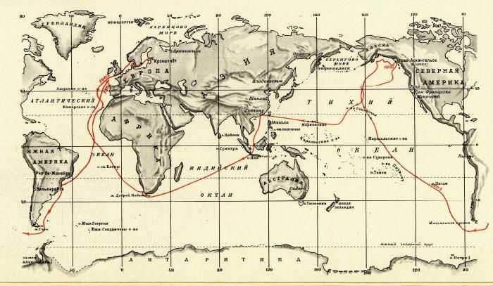 Маршрут и карта кругосветной экспедиции Крузенштерна и ЛисянскогоСовершить первое кругосветное плавание в истории российского флота. Доставить-забрать товары из Русской Америки. Установить дипломатические контакты с Японией. Показать выгодность прямой торговли мехами из Русской Америки в Китай. Доказать выгоду морского пути из Русской Америки в Петербург в сравнении с наземным. Провести различные географические наблюдения и научные исследования по маршруту экспедиции.