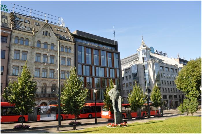 Мы находимся на Площади Кристиании, которая считается самой первой площадью города. Именно здесь король Кристиан IV основал Кристианию, на месте которой теперь стоит Осло. Норвегия состояла в унии с Данией с середины XVI по начало XIX века, поэтому Кристиан IV считался Датско-норвежским королем. Тем не менее, он очень любил Норвегию и бывал здесь гораздо чаще, чем все остальные датско-норвежские монархи вместе взятые. За время своего правления он побывал на норвежской земле около 30 раз и добрался даже до заполярного города Вардë.