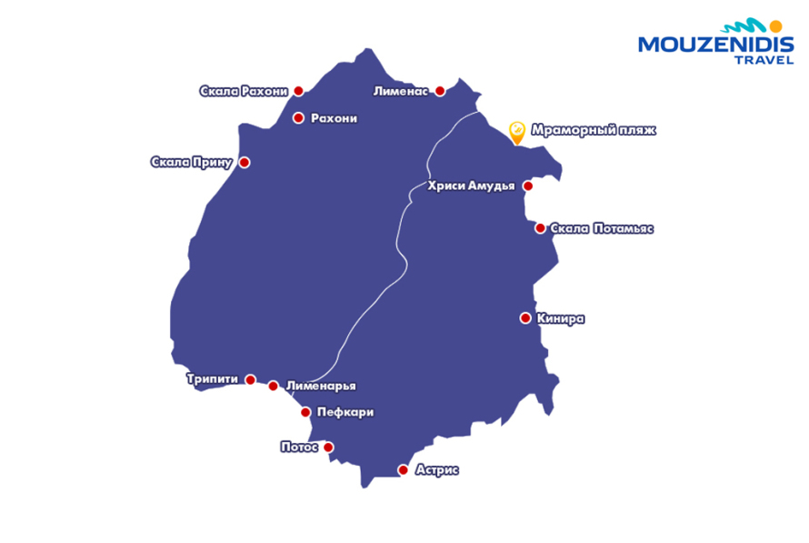 Если вы ищете отдых на море, вы найдете пляжи, разбросанные по всему острову. Лучше всего возле рыбацкой деревни Кини на ее западном берегу.