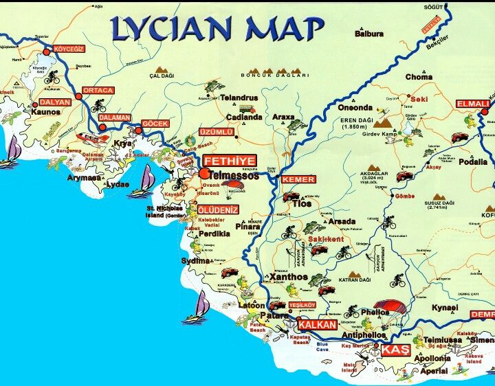 Здешние пейзажи обязательно оценят художники и фотографы – белые строения, яркие крыши, лазурное море – всё это точно сошло с открытки. Можно осматривать старинные достопримечательности, заказать морскую прогулку, отправиться в путешествие по горным тропинкам, испытать свои силы, покоряя Ликийский путь.