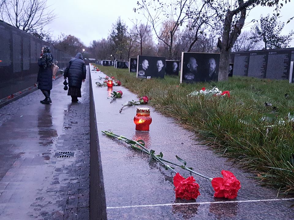 Процессия родственников расстрелянных шла вдоль гранитных плит с именами около часа. В память о жертвах сегодня каждый из пришедших звонил в колокол.