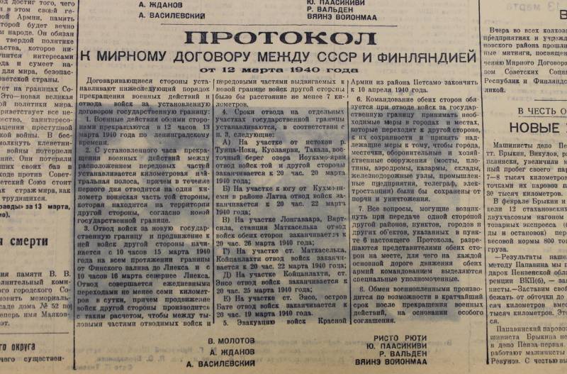 12 марта 1940 года договор с удовлетворением всех советских требований был подписан. В результате переговоров СССР достались следующие территории: