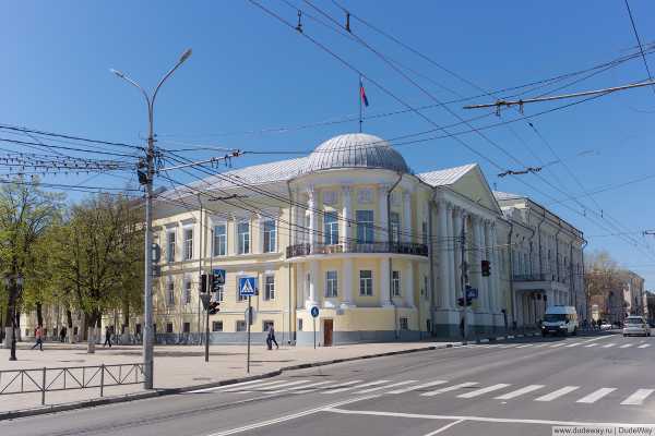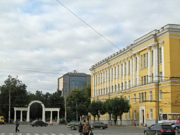 Напротив Политехнический институт. Здание построено в 1813 году в стиле классицизма. Здесь находилась первая мужская гимназия, Ленина 53