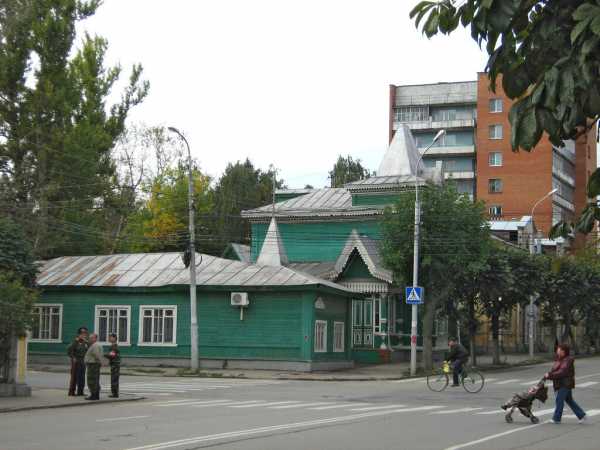 Напротив симпатичный деревянный теремок, затерявшийся среди современных зданий
