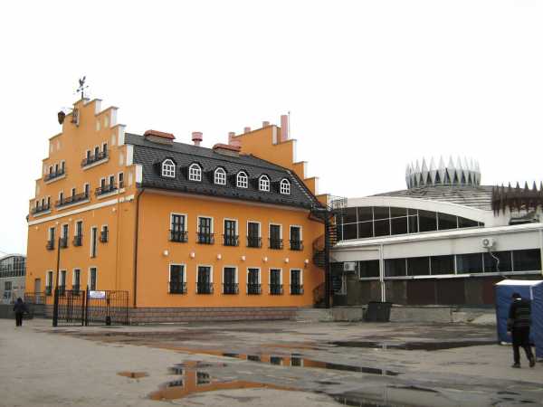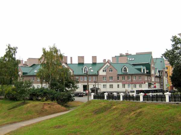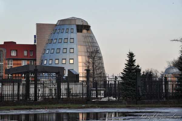 Напротив современный бизнес-центр «Эрмитаж»,стилизованный под старину