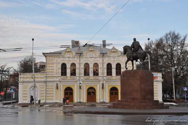 23. Здание Рязанского ТЮЗа на Соборной площади и памятник князю Олегу Рязанскому работы Зураба Церетели.