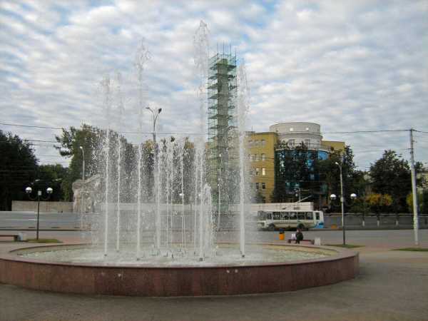 Приехавшего туриста Рязань встречает фонтаном на площади.