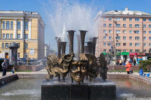 Улица Ленина упирается в Театральную площадь, где располагается Рязанский театр драмы и фонтан «маски»