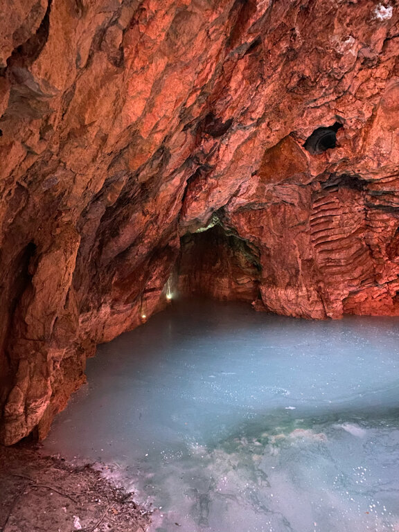 Да и по тоннелю идти к озеру с фонарями не придется. Интересное решение было выбрано для освещения пути: по обеим сторонам вдоль стен расположили маленькие светодиодные лампочки, что придает и без того таинственной пещере еще более загадочный вид.