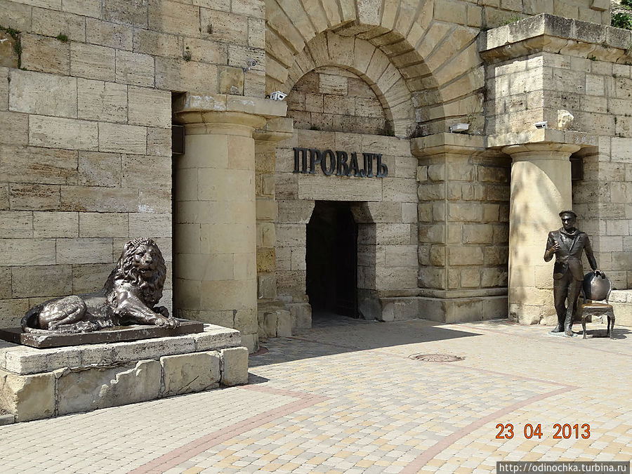 Посетить Провал сегодня можно совершенно бесплатно. Однако так было не всегда. С легкой руки великого комбинатора Остапа Бендера, чья скульптура с 2008 года стоит прямо перед входом в пещеру, в 1929 г., после выхода романа, администрация сделала посещение платным.
