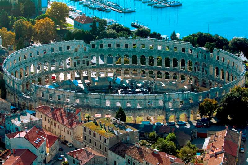 Именно тогда были возведены многие сооружения, дошедшие до наших дней. В частности, огромный амфитеатр, считающийся одним из самых внушительных среди «коллег» на планете. Построен он был в 1-м веке нашей эры и рассчитан на 23 тысячи зрителей. Именно эта арена, без сомнения, и является своеобразной визитной карточкой Пулы.