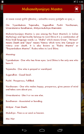 «Аум Йаджамахе Трийябакам Сугандхим Пушти Урварукамива Йаджамахе Вардханам Бандханан Мритйор Мамритат Мукшийя».