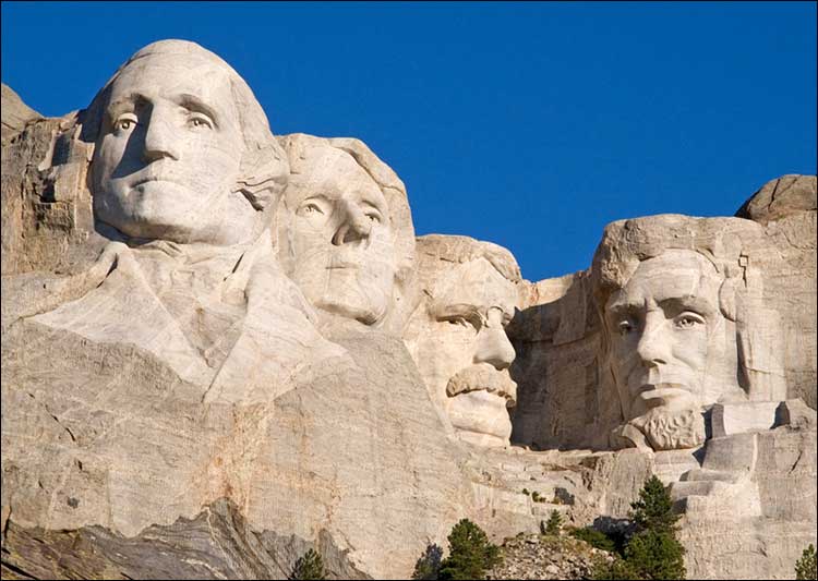 Вашингтона удостоили такой чести за то, что он привел нацию к демократии, Джефферсона — за создание Декларации Независимости, Линкольна — за борьбу с рабством, а Рузвельта — за строительство Панамского канала и охрану института частной собственности.