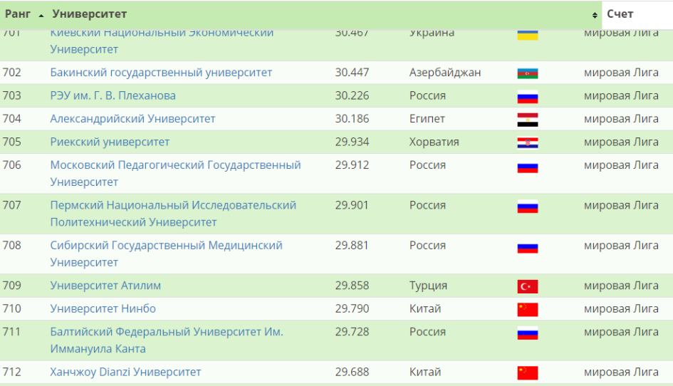 Три вуза представлены в группе 801-1000. Это Российский университет дружбы народов (РУДН), Томский политехнический университет и Волгоградский государственный технический университет.