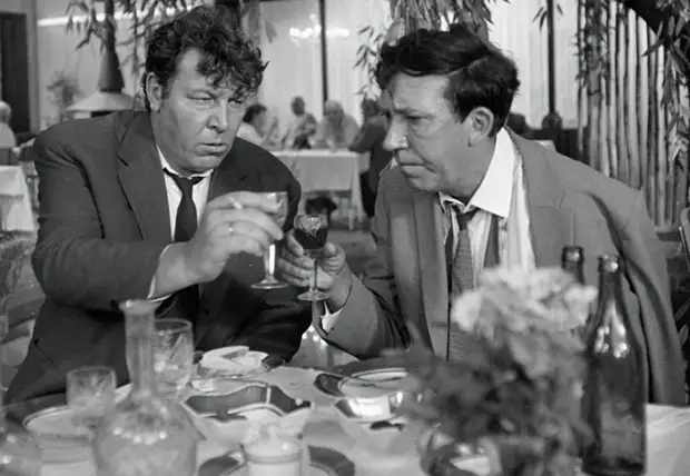 Бриллиантовая рука, комедия 1968 года.В ролях Анатолий Папанов (слева), Андрей Миронов (справа)