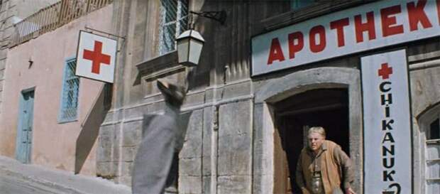 В результате эпизод получился комбинированным – на арбузной корке в нем поскальзываются ноги Леонида Каневского (контрабандист из аптеки), опаздывавшего на другие съемки и сильно рассерженного задержкой. Зато Миронов на той же улице плюхнулся на пятую точку без всяких корок и с первого раза.