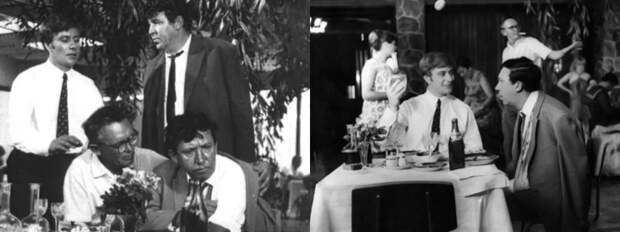 Кстати благодаря архивам Мосфильма удалось выяснить, что ресторанные съемки проходили в павильоне кинокомпании, где выстроили декорации ресторана «Плакучая ИВА». Вот несколько кадров со съемочной площадки.