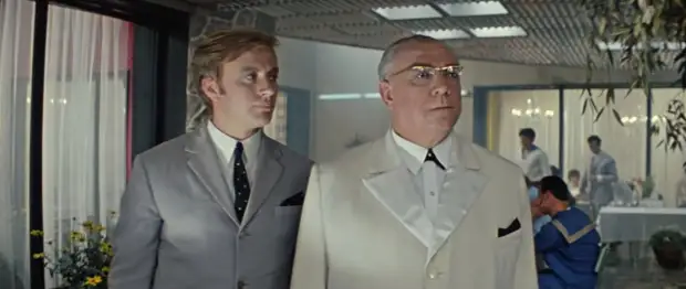 Кадр, где помощник управляющего застегивает молнию: «Позор пьянице и хулигану» всего несколько секунд, но совершенно безумное состояние прокурора видно. Картина буквально пестрит подобными происшествиями, подглядывающими в повседневной жизни.