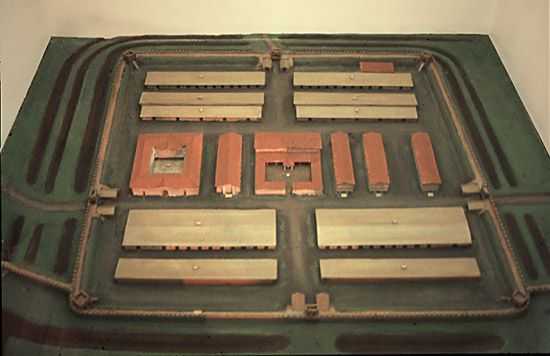 Сзади претория через улицу помещались вспомогательные войска. В другой части лагеря, по обеим сторонам via praetoria (главная улица лагеря), располагались остальные войска.