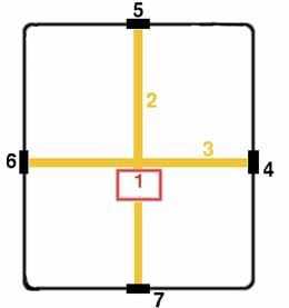 План римского лагеря: 1 — форум; 2 — палатки трибунов и префектов; 3 — квартал, в котором располагались палатки интендантов и казначеев; 4 — палатки отборных войск; 5 — палатки вспомогательных войск; 6 — кварталы, занимаемые палатками легионеров
