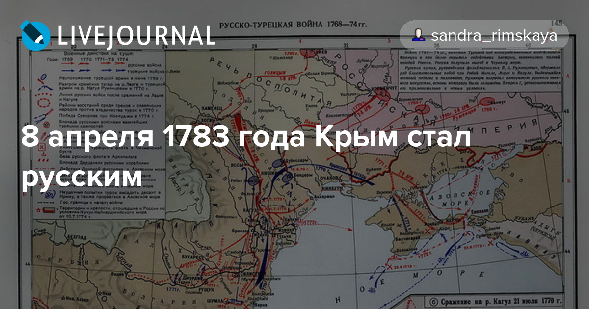 В $1773-1774$ гг. Крым был занят, в особенности благодаря армии Суворова А.В.