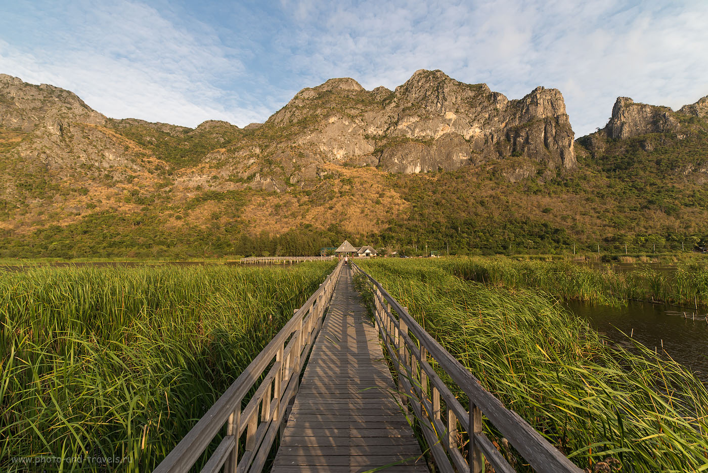 Место называется Thung Sam Roi Yot (Lotus Swamp) и находится с другой стороны национального парка, и ехать сюда нужно отдельно с основной трассы Хуа Хин — Сураттани. У меня не хватило времени на это, да и по жаре не очень хотелось, тем более в идеале нужно ехать в то время, когда эти лотосы цветут. Вроде начало апреля, когда влажный сезон начинается. Место уникальное, это самое большое болото в Таиланде (37 кв. км), а для нашего с вами удобства проложены мостки.