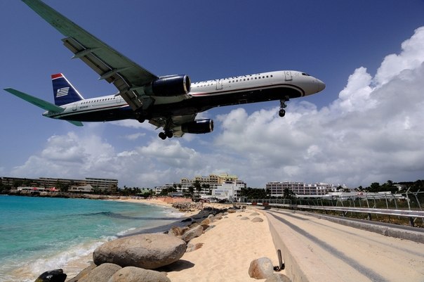 Аэропорт Принцессы Юлианы. Согласитесь, уже звучит романтично, не правда ли? Эта воздушная гавань не производит незабываемое впечатление на пассажиров: ее взлетно-посадочная полоса начинается сразу за пляжем Махо, поэтому заход на посадку происходит в 10-20 метрах над головами отдыхающих. С точки зрения авиации, в зависимости от погодных условий, взлет и посадка здесь «средней и высокой» степени сложности. Но и туристы, догоняющие свои полотенца и периодически обнимающие забор, дабы не улететь от воздушной волны, и пассажиры, лицезреющие из иллюминаторов такие картины, полагают, что все это делает местный аэропорт одним из самых опасных в мире.