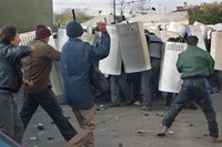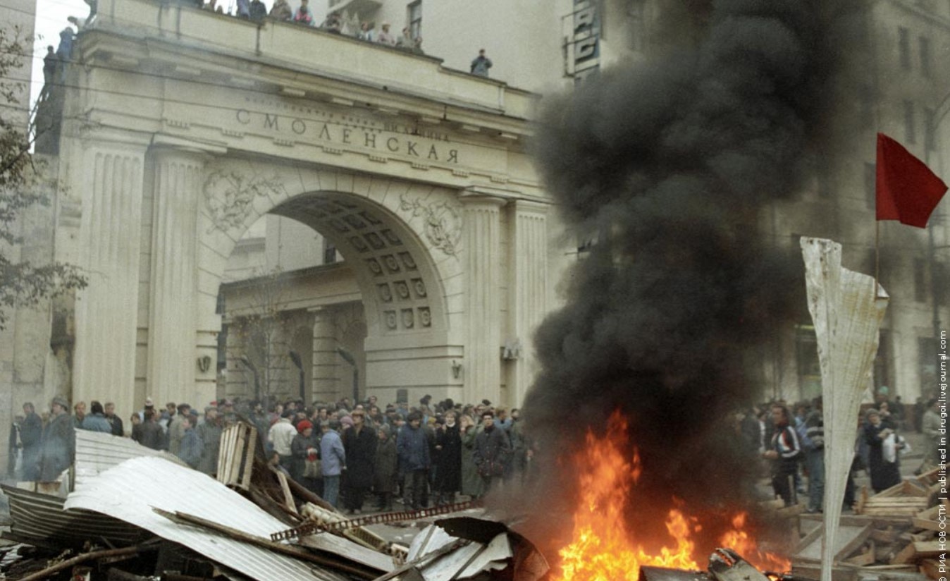 2 октября на Смоленской площади начался митинг сторонников Верховного Совета, вылившийся в столкновения демонстрантов с милицией и ОМОНом.