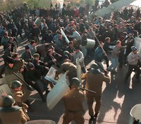 Около телецентра «Останкино» 3 октября 1993 года– Но они не знали, насколько Ельцин использовал провокации, их это несколько извиняет. Самое важное событие – это была резня около «Останкино», когда внутренние войска открыли огонь по толпе, безоружной толпе. Ельцин использовал этот инцидент, чтобы убедить или приказать армии напасть на Белый дом. Что там случилось у телецентра «Останкино»? Самые главные факты мы уже знаем. В Москве были тысячи омоновцев, они били людей каждую ночь, били демонстрантов, которые поддерживали Верховный совет. Вдруг 3 октября из центра Москвы милиция исчезла, оставила только грузовики, автобусы, ключи в зажигании. Люди на этих машинах поехали в Останкино, где их ждали сотни внутренних войск с автоматами.